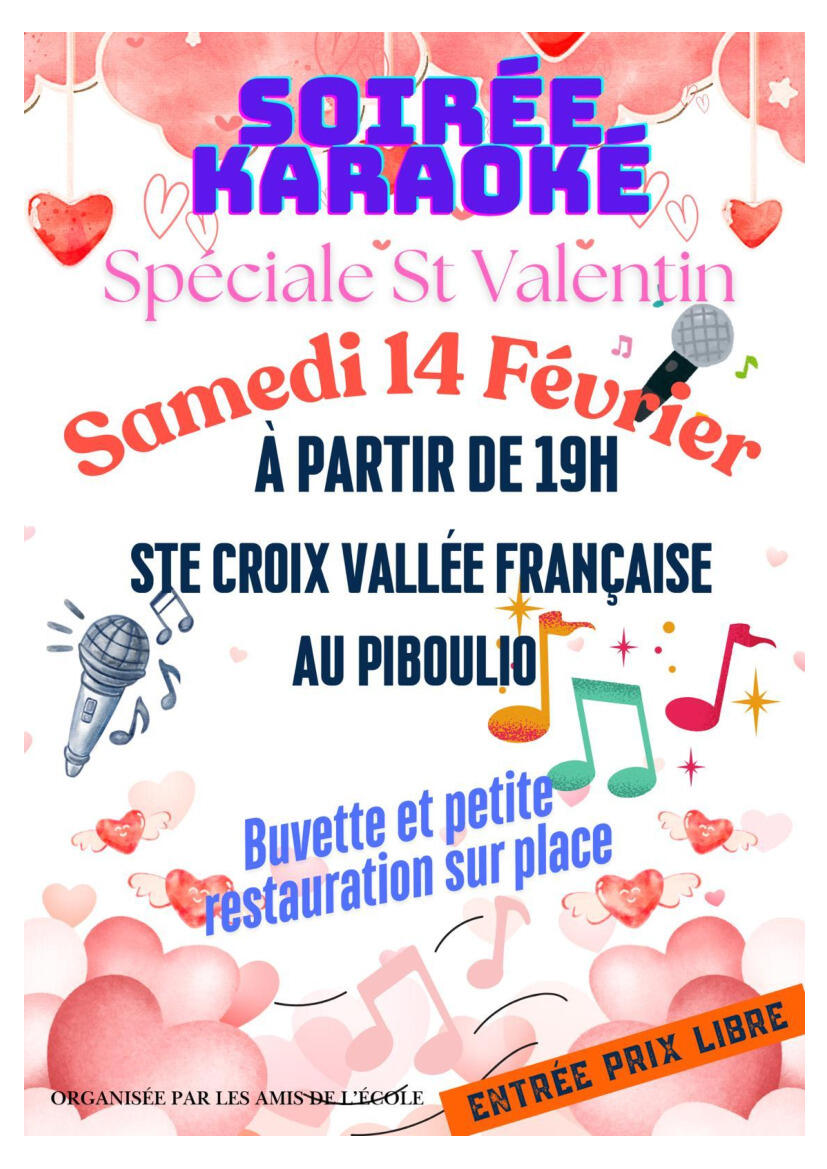 Samedi 14 au Piboulio à partir de 19h : Soirée Karaoké organisée par l'APE de Sainte Croix