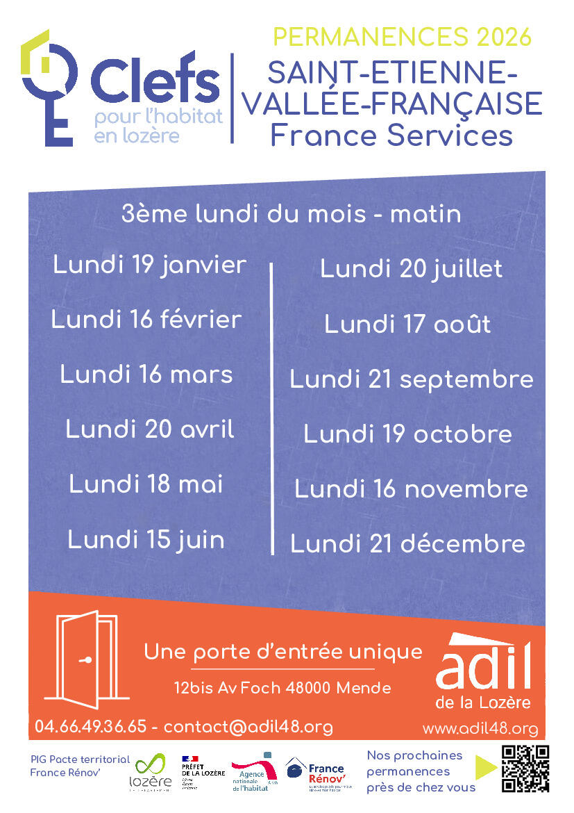 Des permanences sont présente à St Etienne V.F et Florac pour vous aider dans votre projet de rénovation de logement.