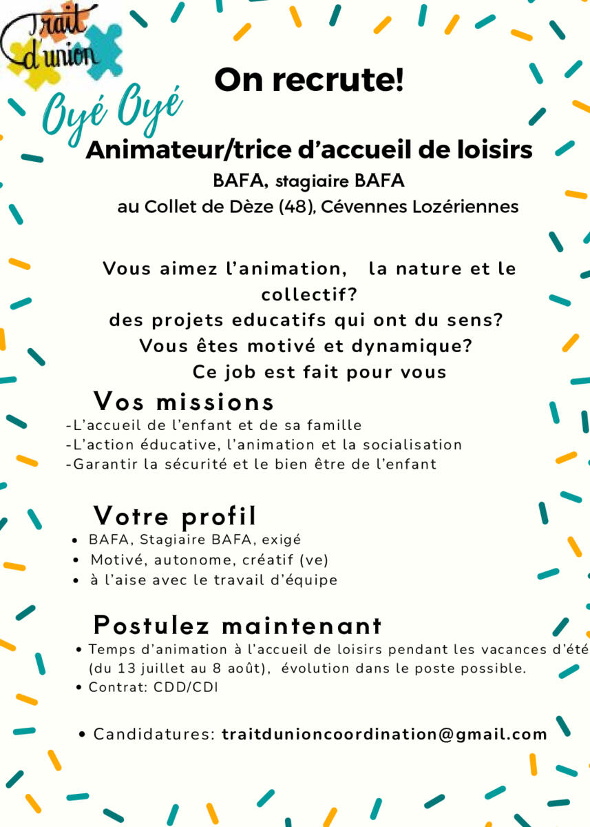 Offres d'emploi au Collet de Dèze ! 26-03-26 L'association Trait d'Union recherche deux personnes pour cet été ! Annonces ci-jointes !