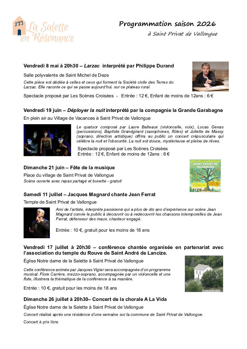 Programme 2026 de La Salette en Résonance