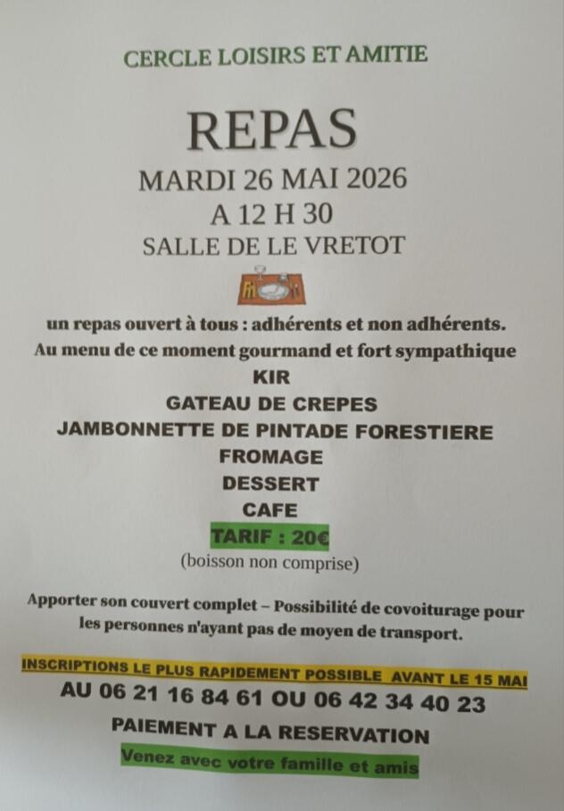 Votre mairie / Agenda / Repas - Cercle Loisirs et Amitié