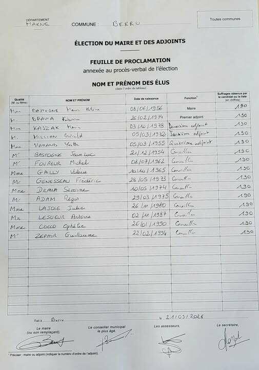 Le 1er conseil municipal du nouveau mandat s'est tenu ce matin et ont été élus à l'unanimité: