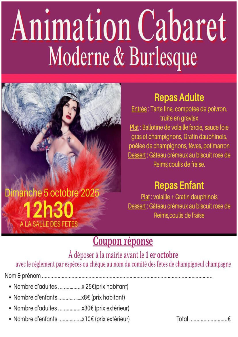 REPAS FETE CHAMPIGNEUL DIMANCHE 5 OCTOBRE