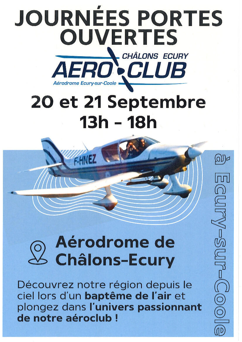L'aéroclub Châlons-Écury organise ses Journées Portes Ouvertes
