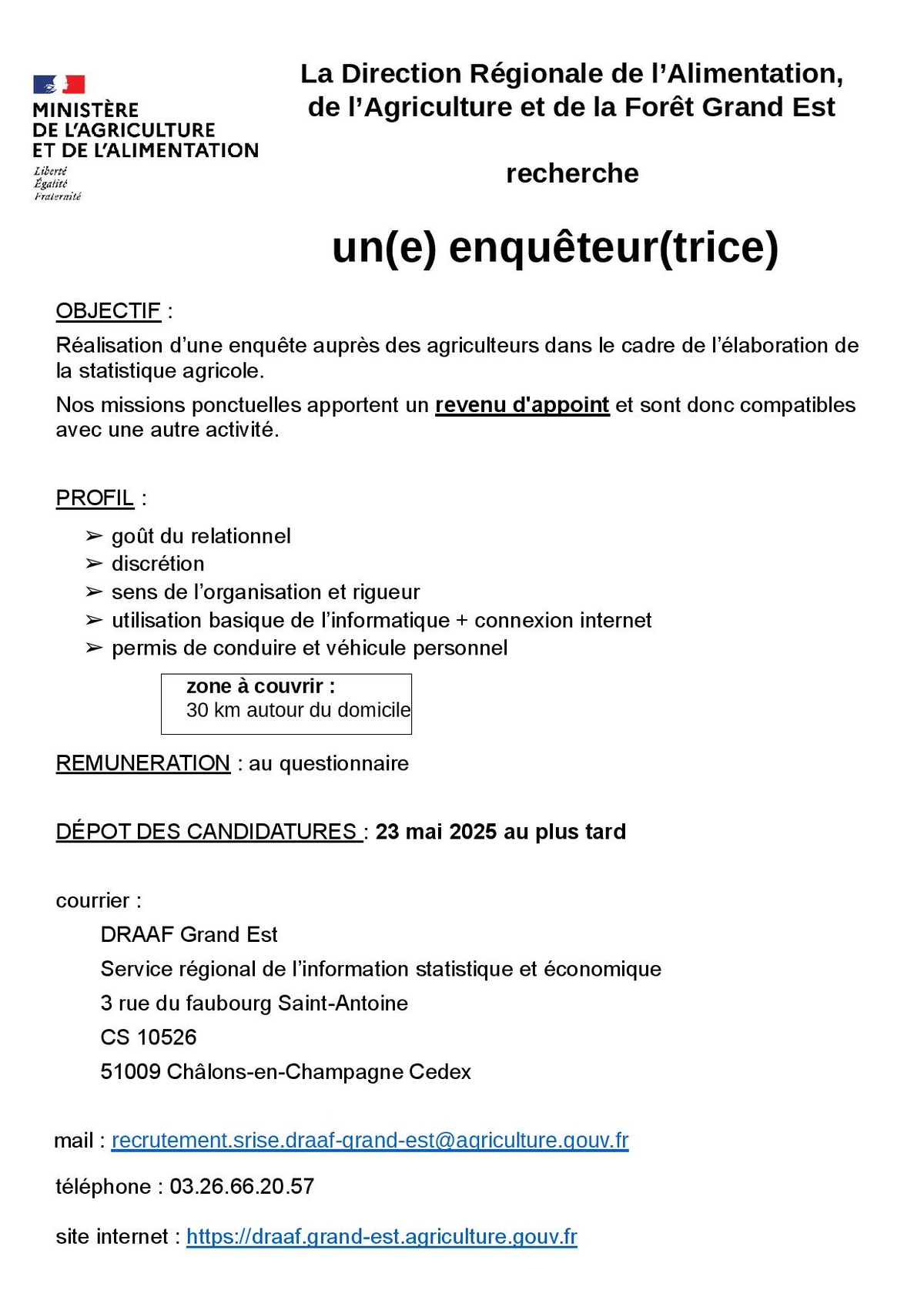 Recrutement (DRAAF) 25-05-07 Source: Direction Régionale de l'Alimentation, de l'Agriculture et de la Forêt. Source : Mairie d'Heiltz-Le-Maurupt