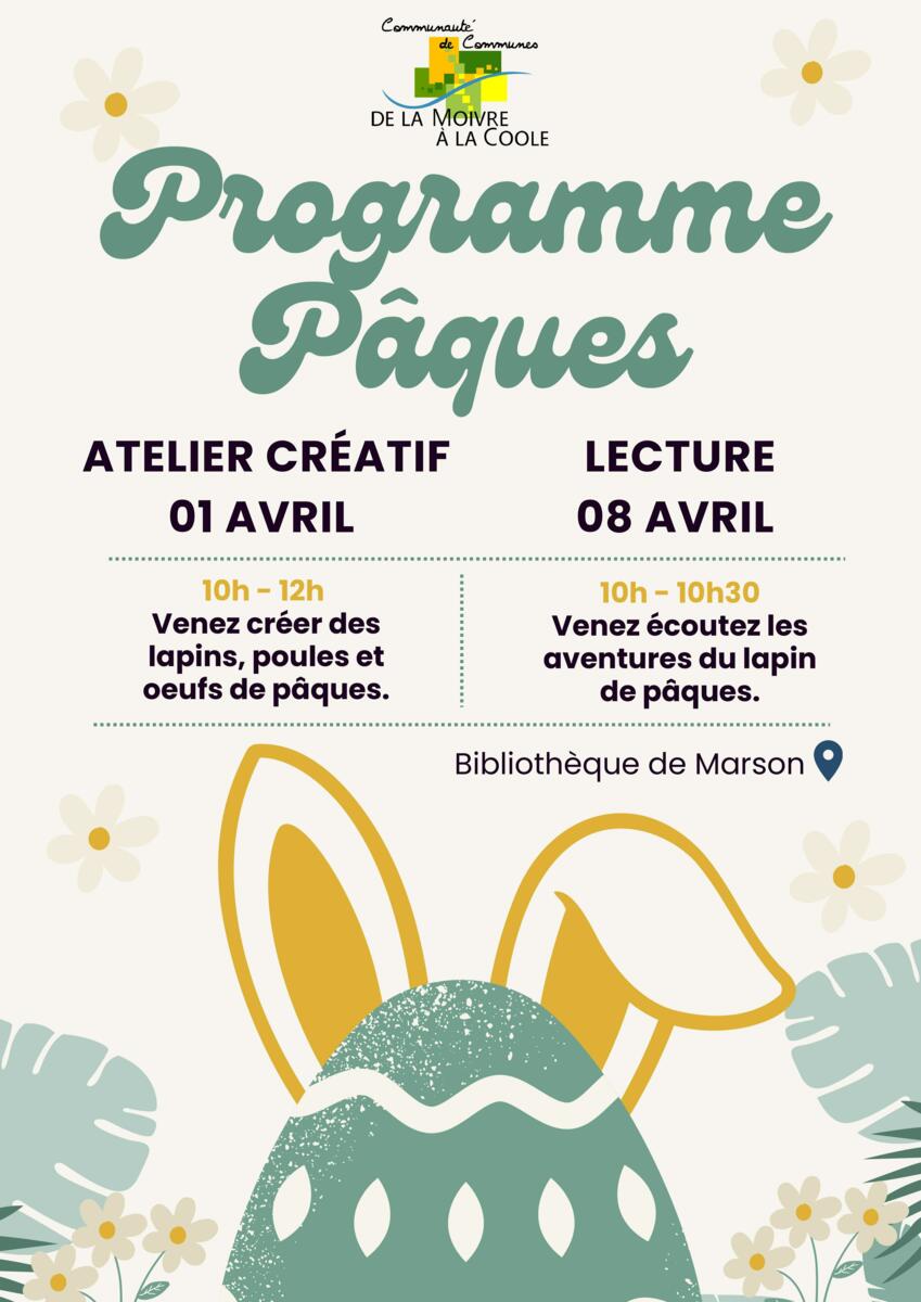 Nous avons le plaisir de vous partager le programme d’animations des bibliothèques de Marson et de Mairy-sur-Marne pour le mois d’avril.