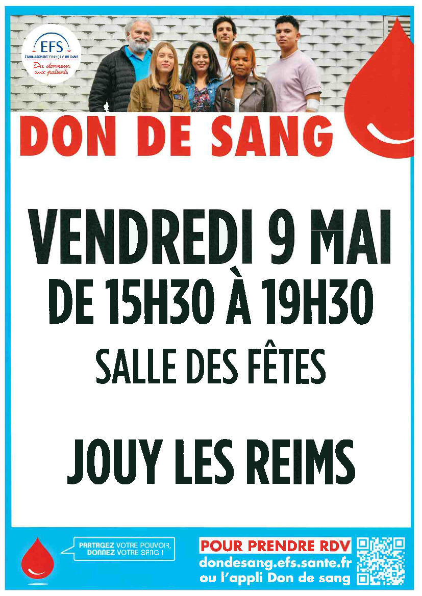 Votre mairie / Actualités / DON DU SANG à JOUY-lès-REIMS