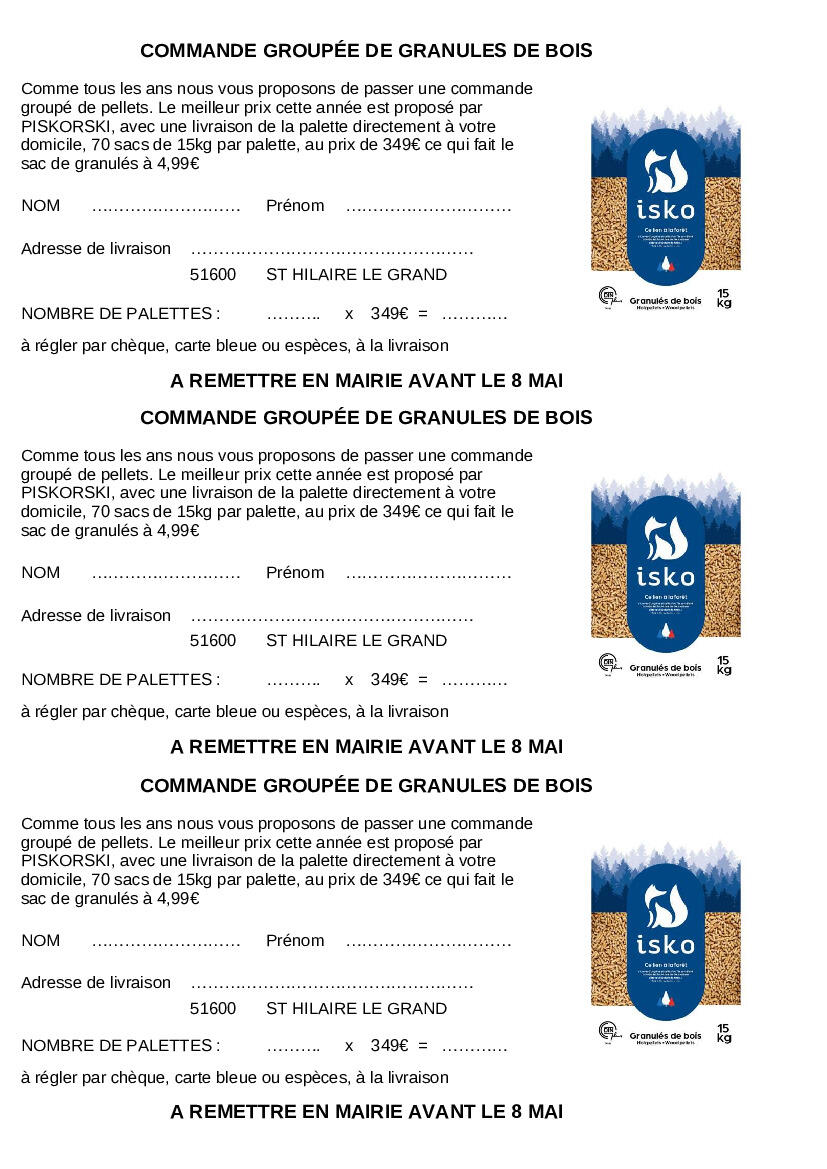 Votre mairie / Actualités / Commande de pellets