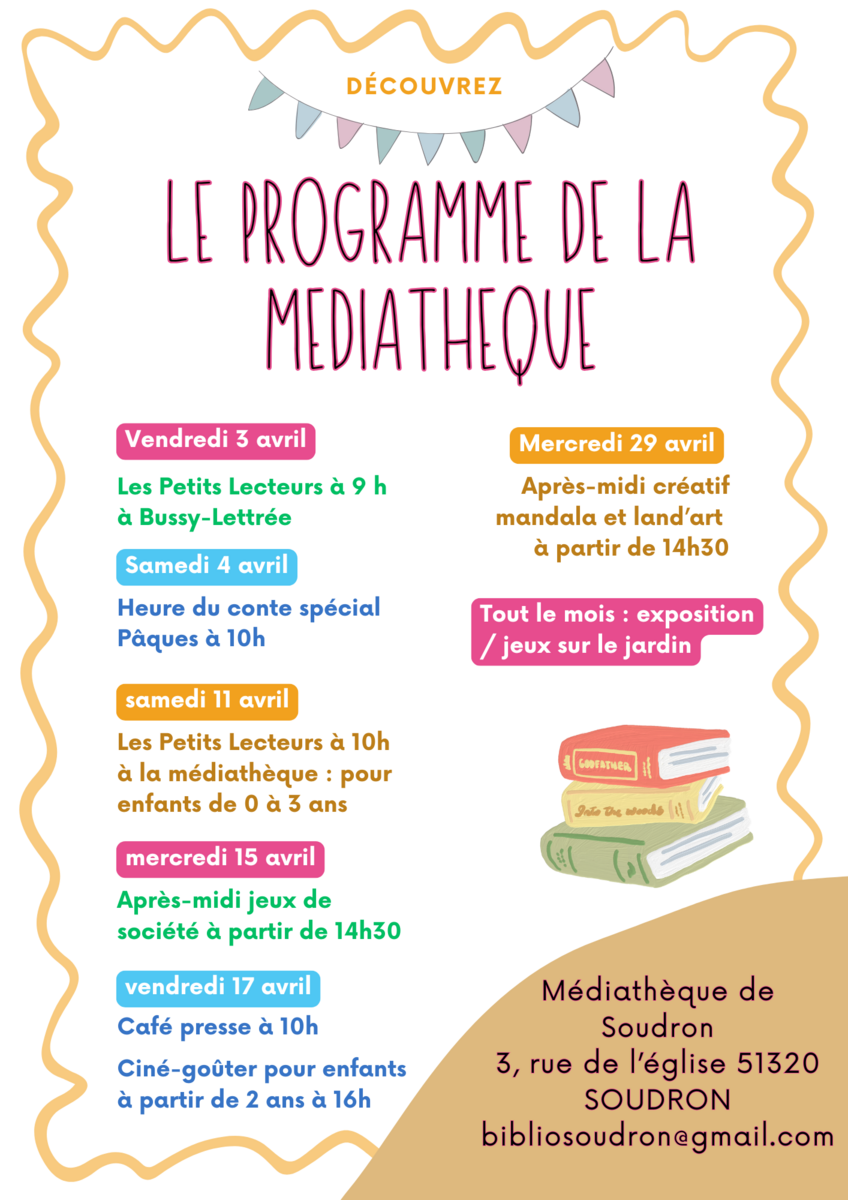 Médiathèque de Soudron : Programme du mois d'avril