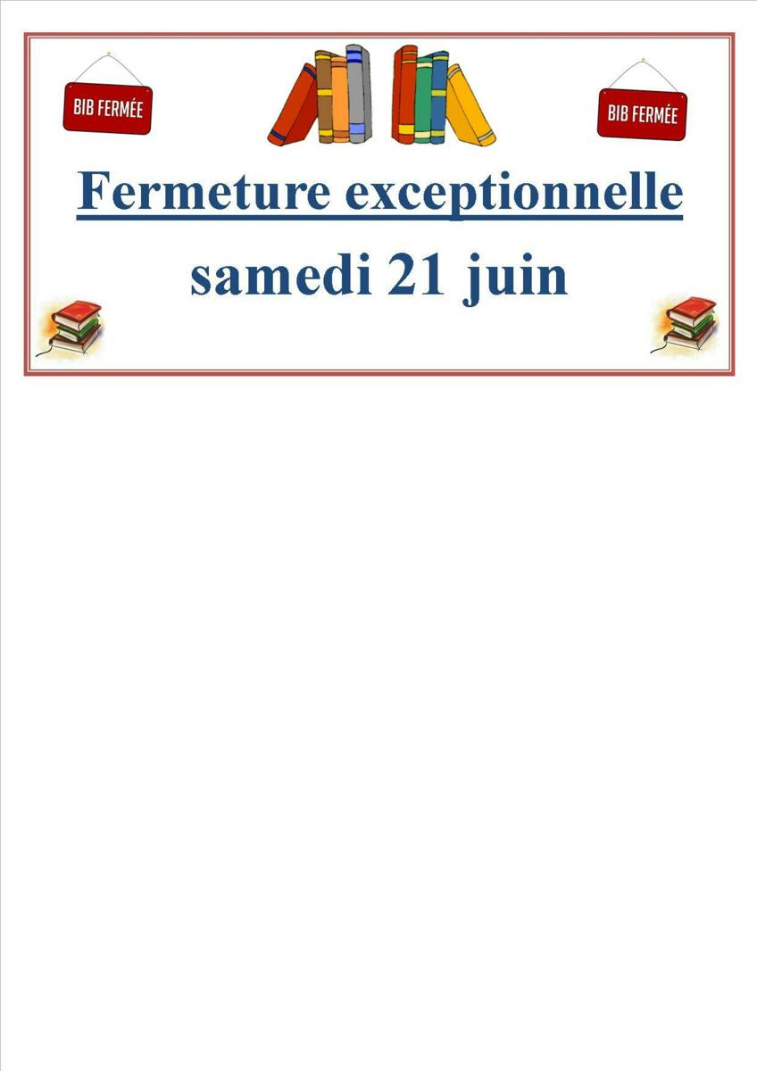 La médiathèque sera fermée ce samedi 21 juin de 8h à 12h.
