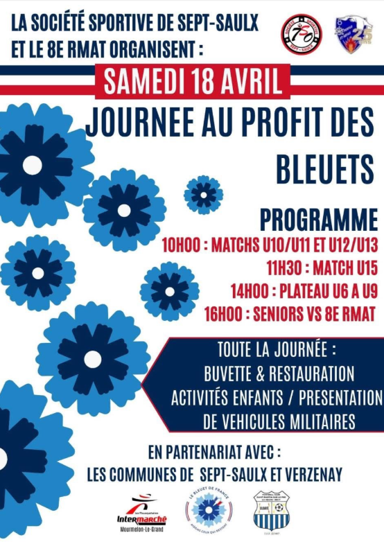 🏃La Société Sportive de Sept Saulx et le 8eme RMAT organisent une journée au profit des Bleuets