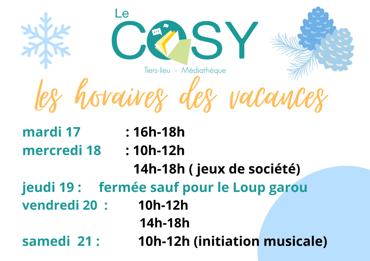 Pour mieux vous accueillir, le COSY ouvre plus largement ses portes pendant les vacances de février. Venez profiter d’un espace chaleureux, de la borne rétro gaming avant son départ le jeudi 26 février.