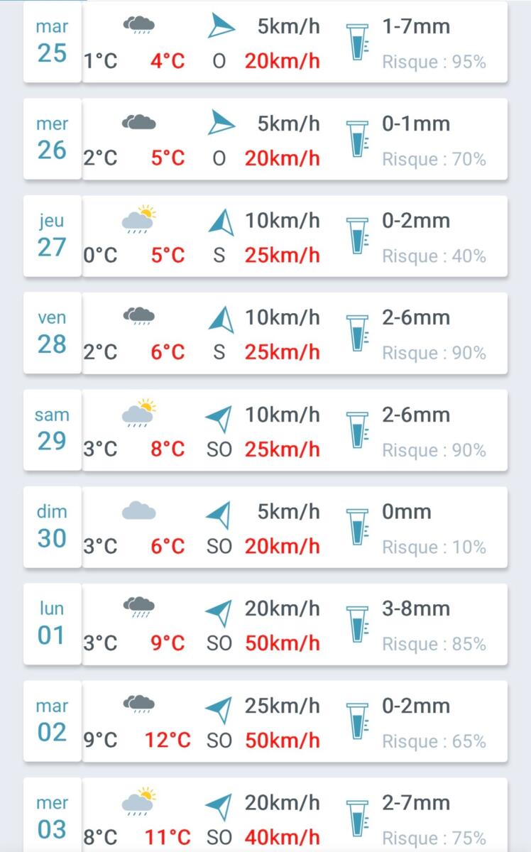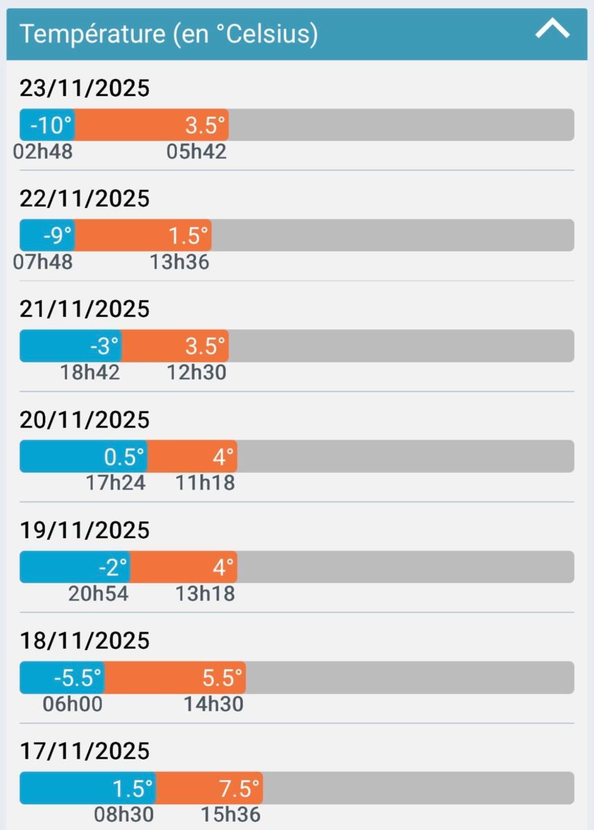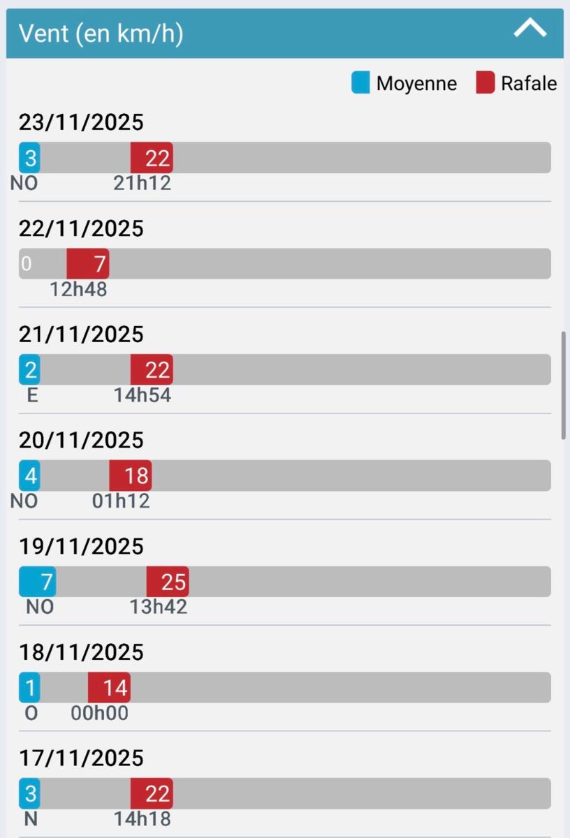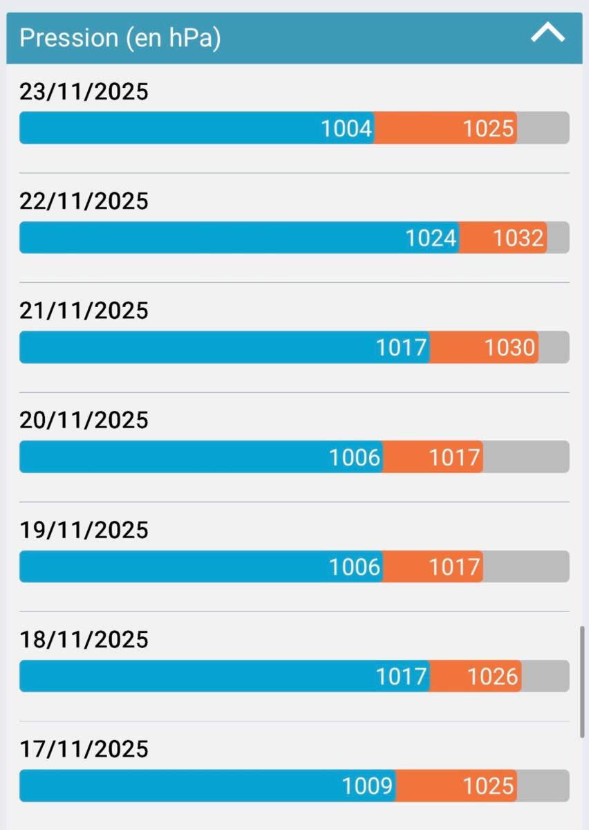 Petit point météo en ce lundi 24 novembre 2025, avec la météo heure par heure, une prévision sur quelques jours et un retour sur les derniers jours.