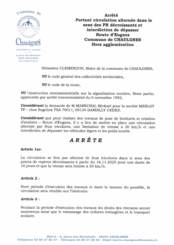 Infos travaux route d'Eugnes