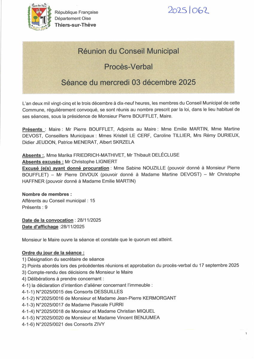 PROCES-VERBAL REUNION CONSEIL MUNICIPAL - 03 DÉCEMBRE 2025