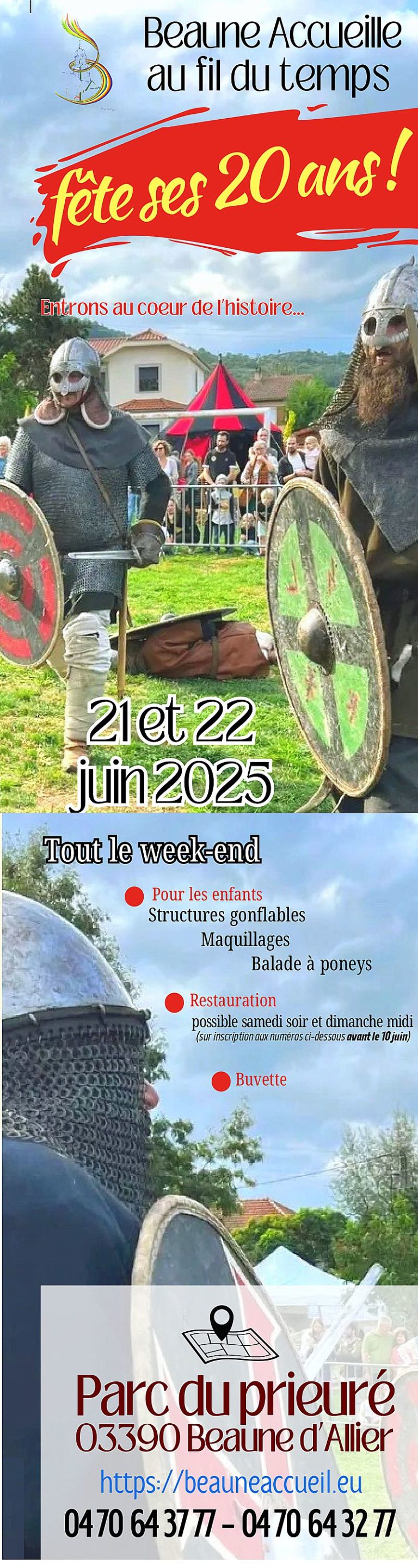 Beaune Accueille au fil du temps, fête ses 20 ans ! 25-06-14 Consulter le programme complet en cliquant ici.