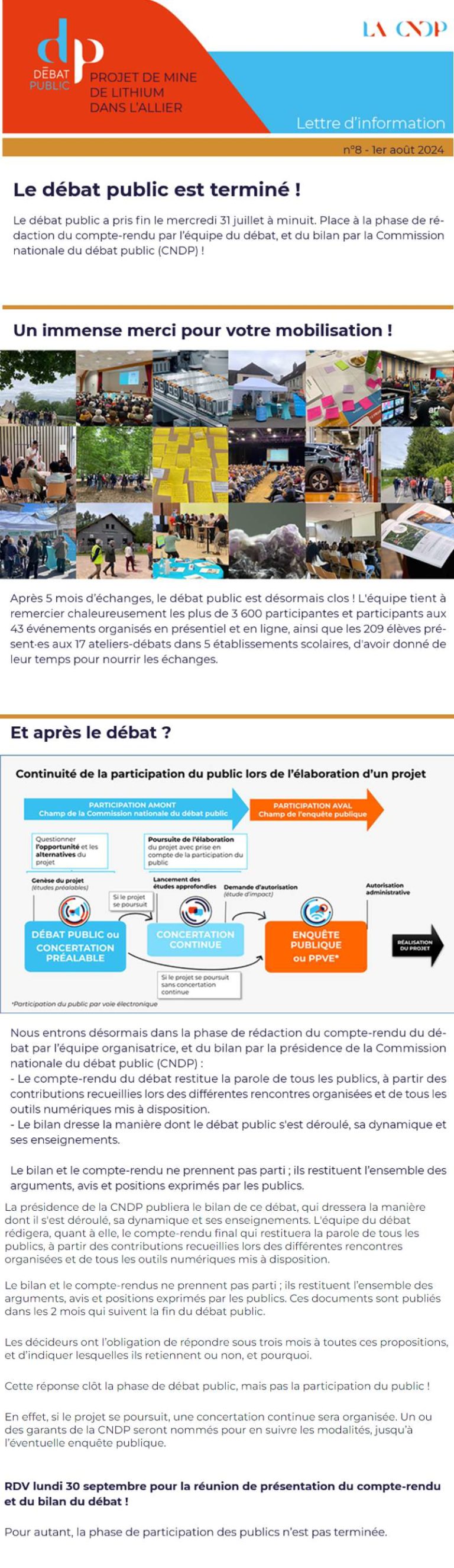 Projet de lithium. Réunion de présentation du compte-rendu, du bilan et du débat.