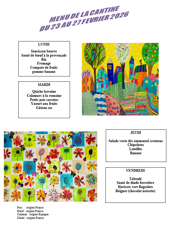 Voici le menu du 23 au 27 février.