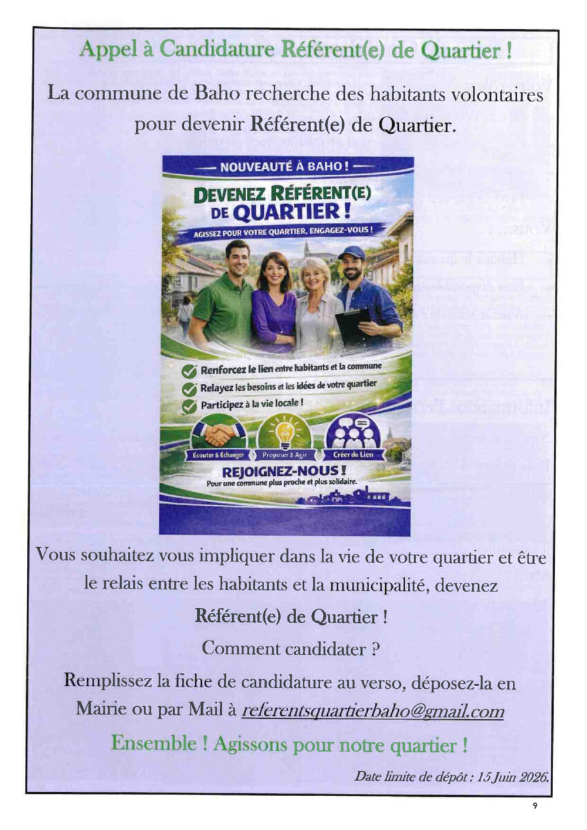 Appel à Candidature Référent(e) de Quartier !