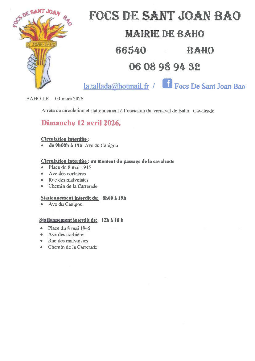 DIMANCHE 12 AVRIL CARNAVAL DE BAHO