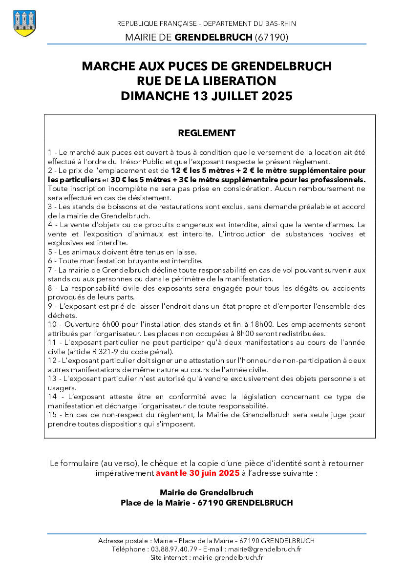 Le marché aux puces de Grendelbruch aura lieu le 13 juillet 2025.