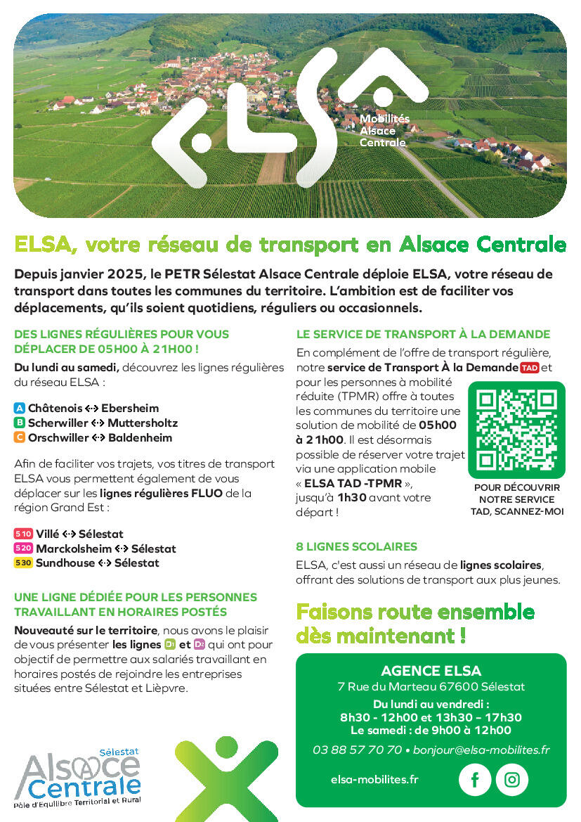 N’hésitez pas à consulter notre site internet dans la rubrique “Informations pratiques” pour plus d’informations, ou rendez-vous sur leur site officiel elsa-mobilites.fr.