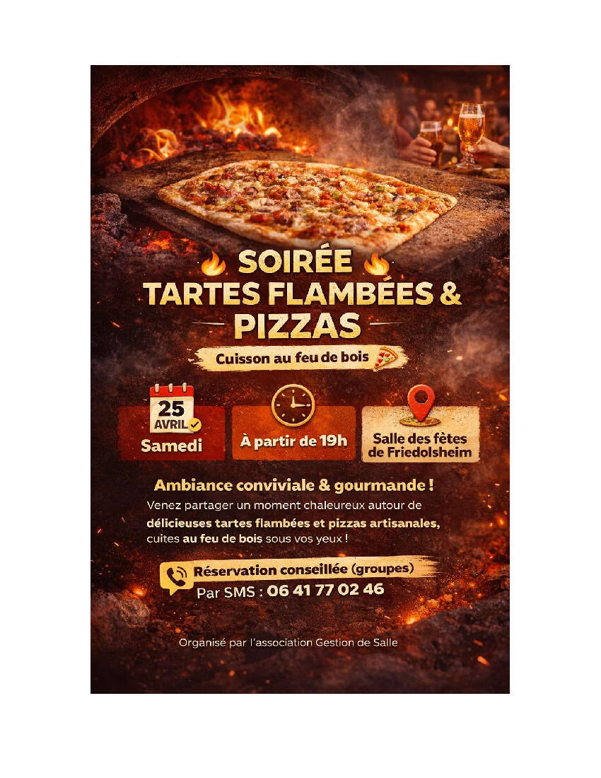 Soirée Tartes Flambées Samedi 25 Avril à FRIEDOLSHEIM