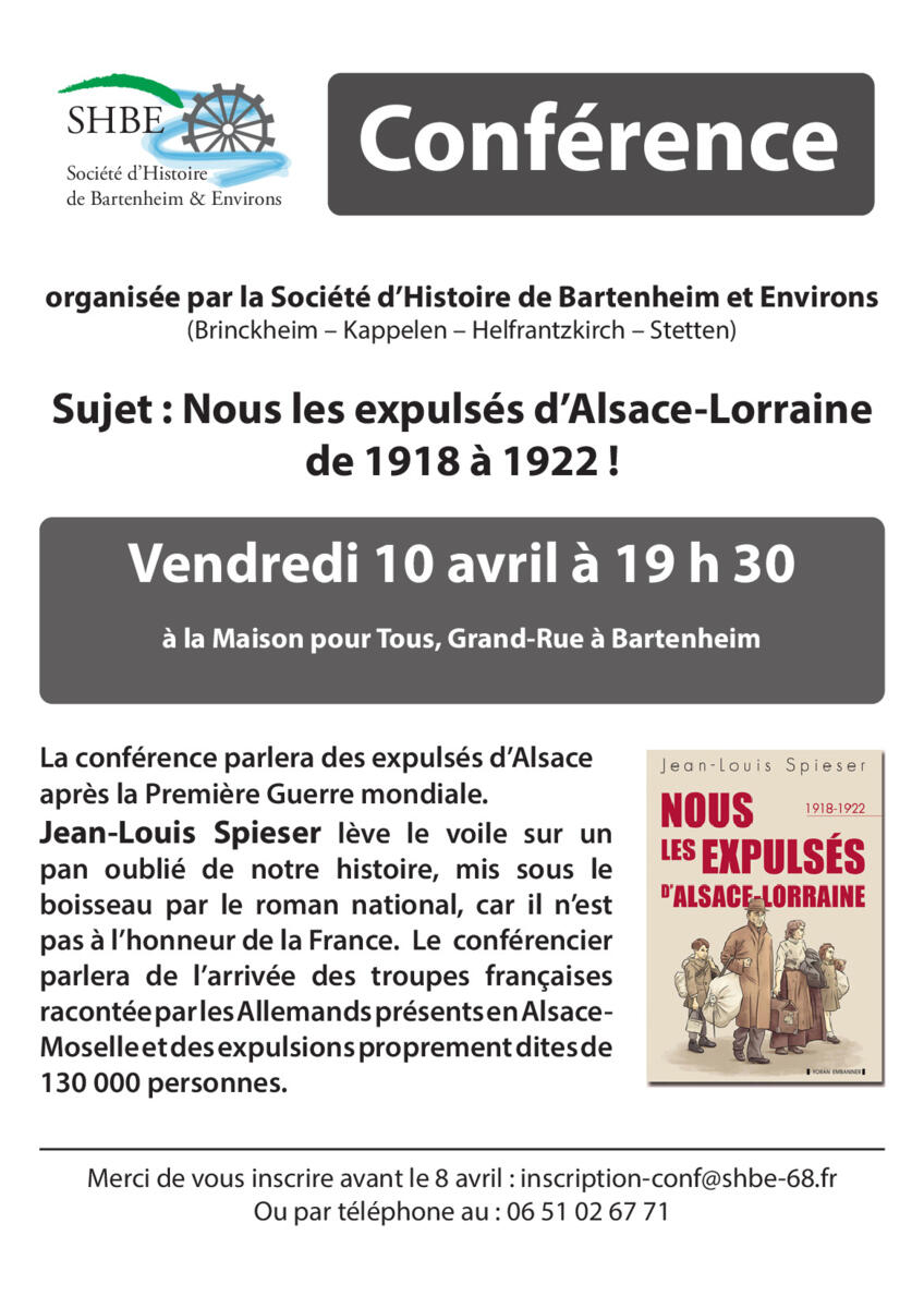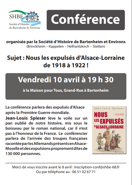 Conférence de la Société d'Histoire de Bartenheim - 10 avril