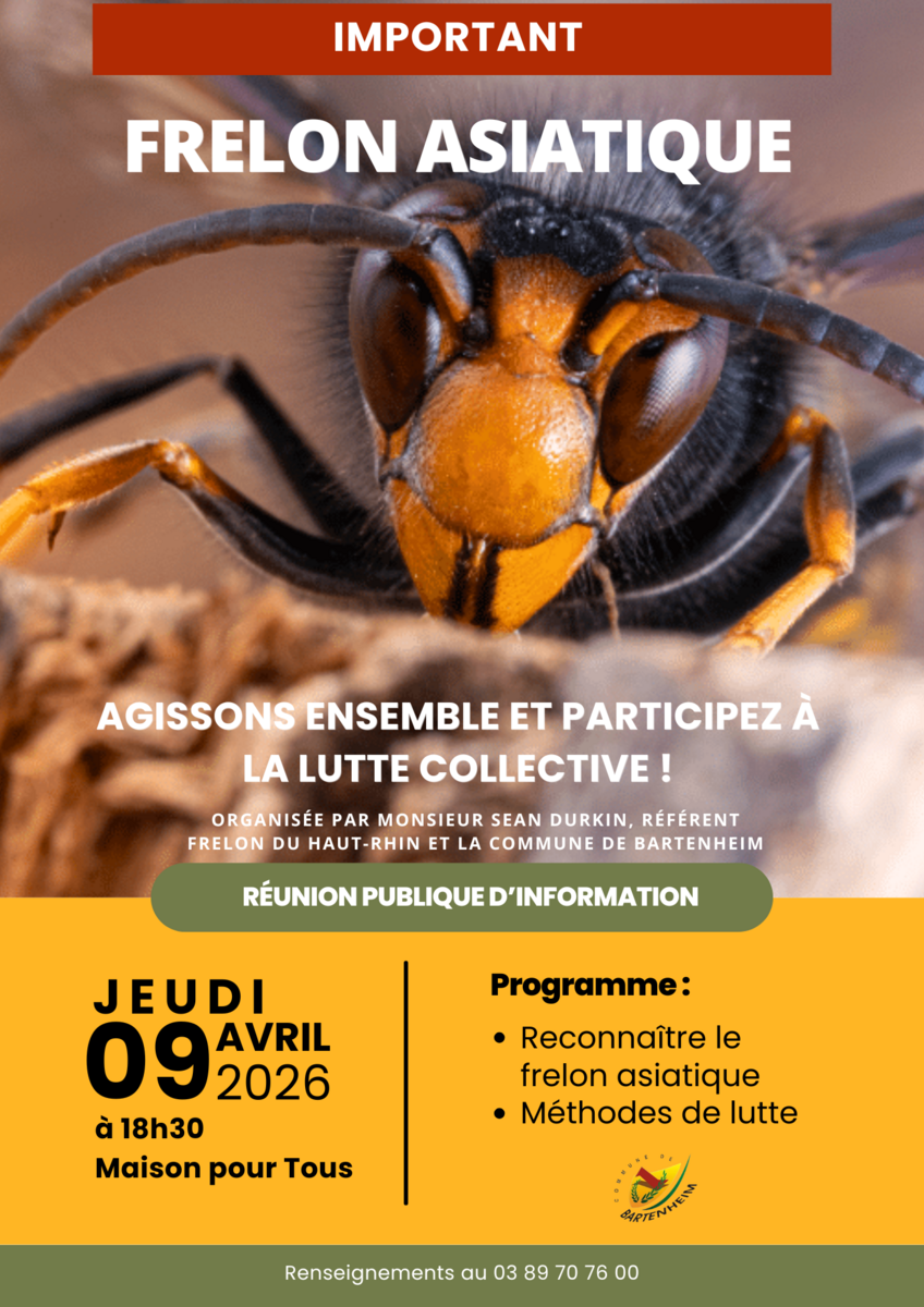 Frelon asiatique : réunion publique le jeudi 9 avril 2026