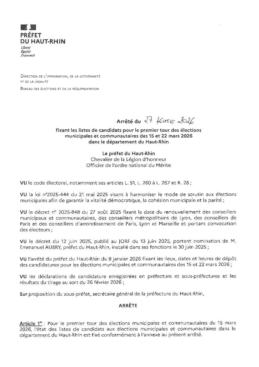 ELECTIONS MUNICIPALES 2026 : LISTE DES CANDIDATURES 1ER TOUR