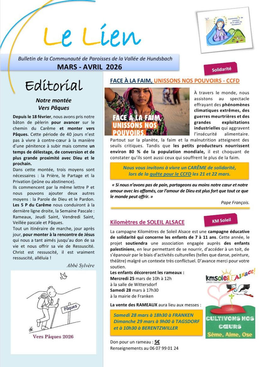 Communauté de Paroisses : bulletin Le Lien mars-avril 2026