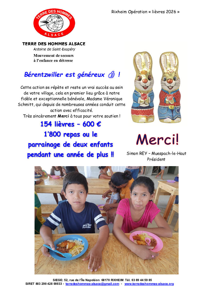 Terre des Hommes : Résultats de l'opération "lièvres 2026"