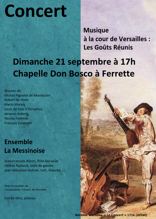 🎶 À 17h, concert de musique baroque par l’ensemble La Messinoise à la chapelle Don Bosco (route de Lucelle).