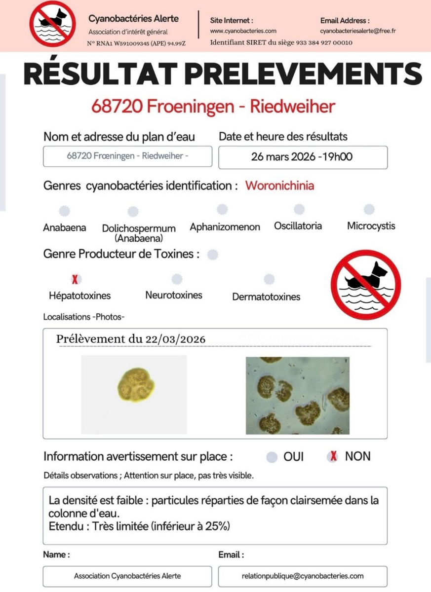 ⚠️ VIGILANCE – PRÉSENCE DE CYANOBACTÉRIES ⚠️
