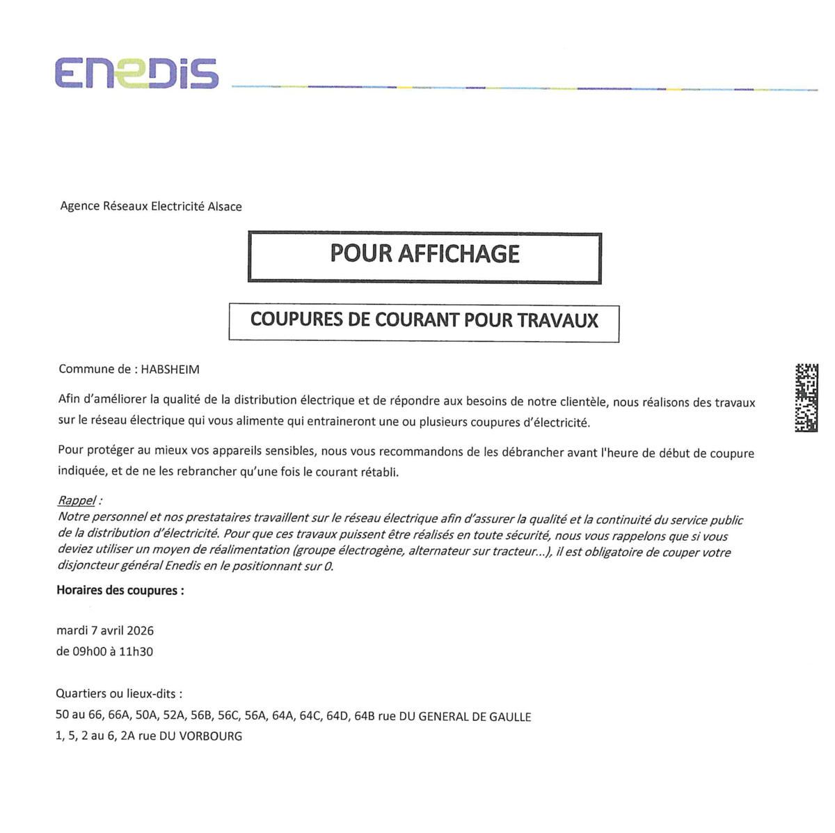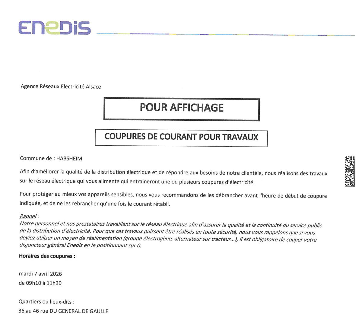 Coupures électricité le 7/04, rue de Gaulle et Vorbourg