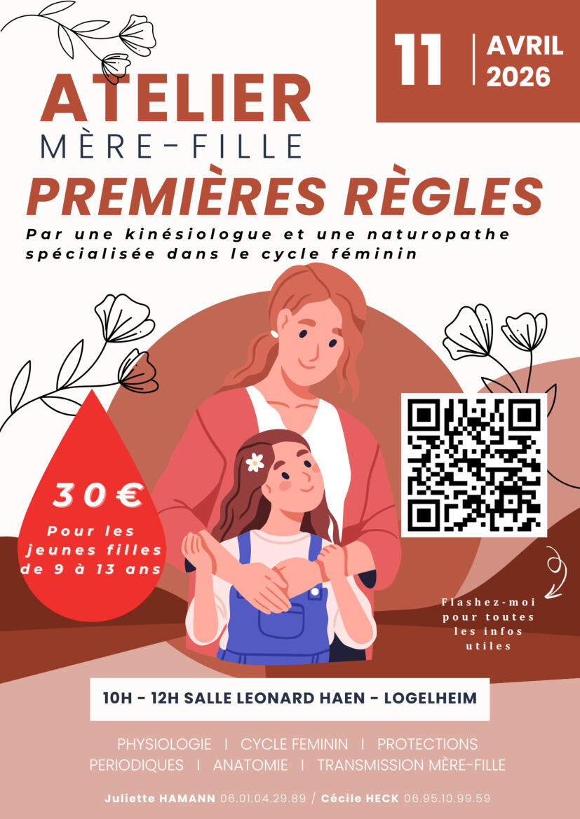 Cécile Heck, naturopathe spécialisée dans le cycle féminin et Juliette Hamann, kinesiologue vous proposent un atelier mère-fille sur le thème des premières règles :