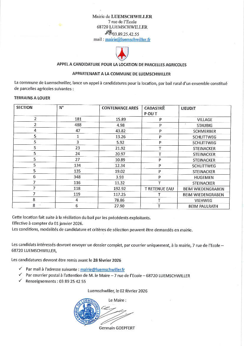 Toute l'actualité de Mairie de Luemschwiller