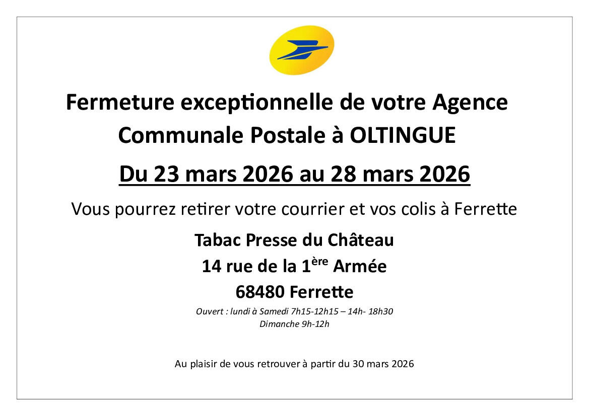 Fermeture de la Poste du 23 au 28 mars 2026