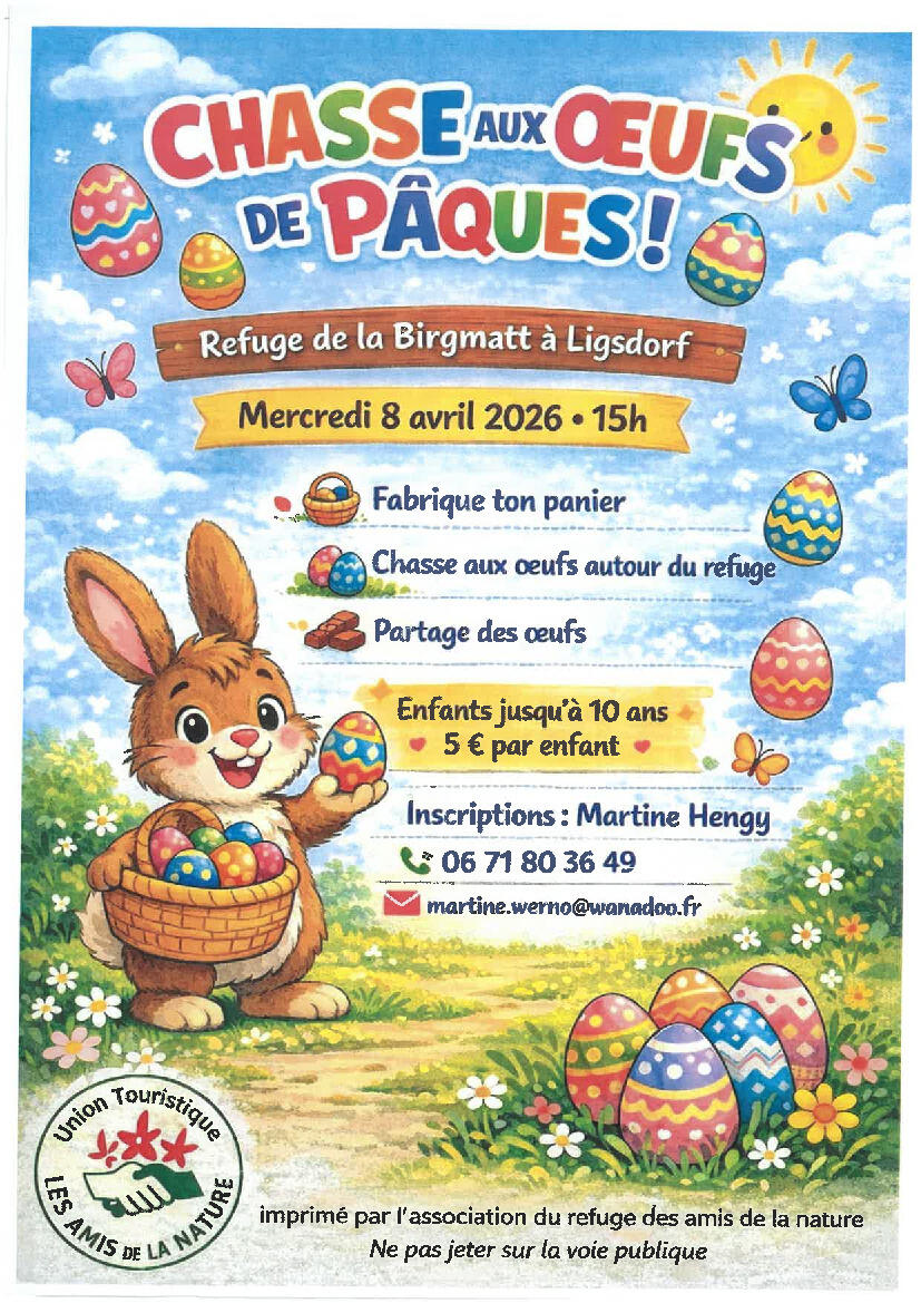 Chasse aux oeufs à Ligsdorf le mercredi 08 avril 2026