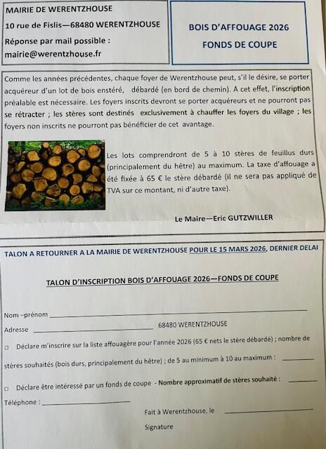📣Vous souhaitez vous porter acquéreur d'un lot de bois d'affouage🪵, retournez votre talon d'inscription à la Mairie pour le 15 mars 2026, dernier délai.📆