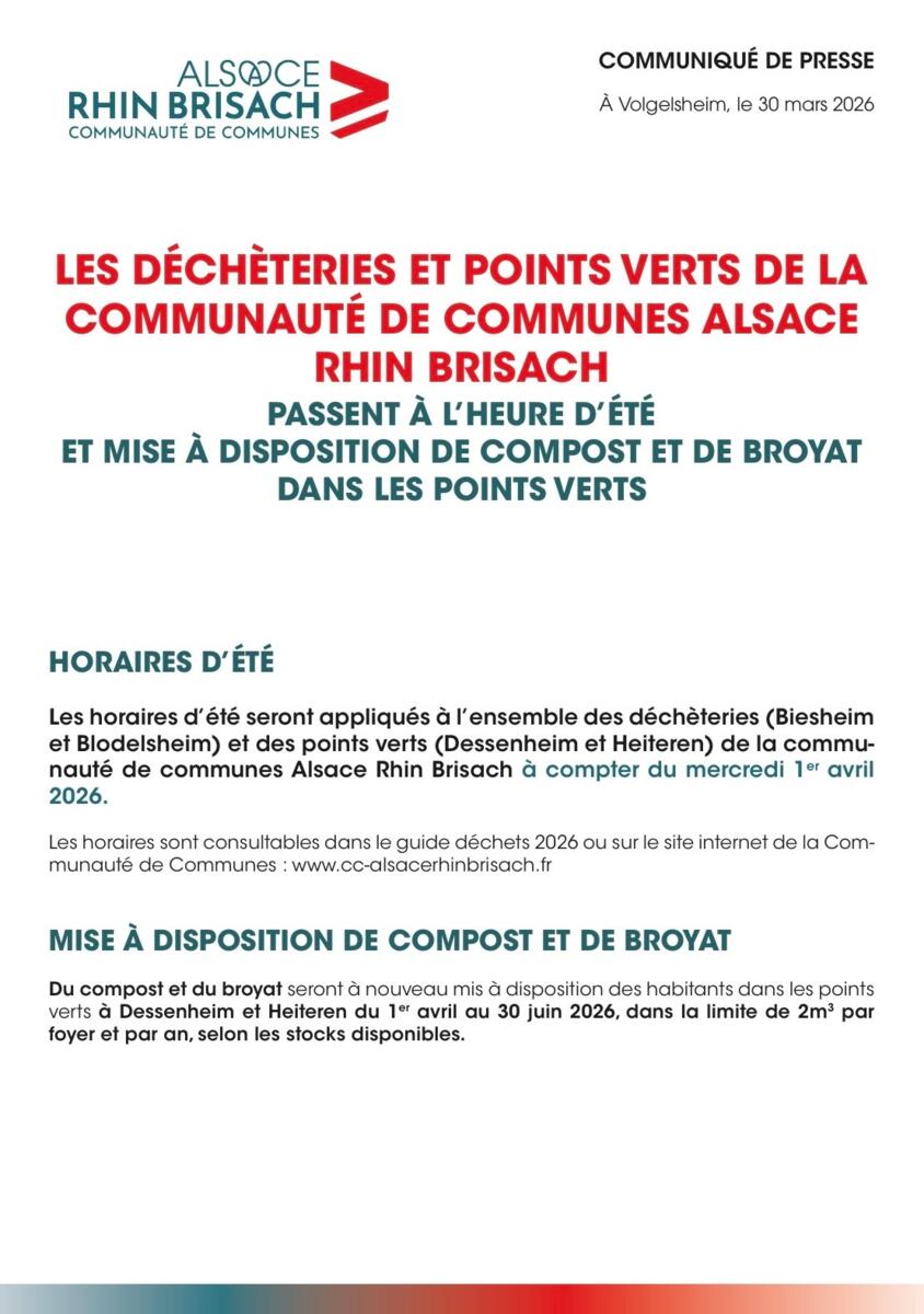 LES DÉCHÈTERIES ET POINTS VERTS - HEURE D’ÉTÉ