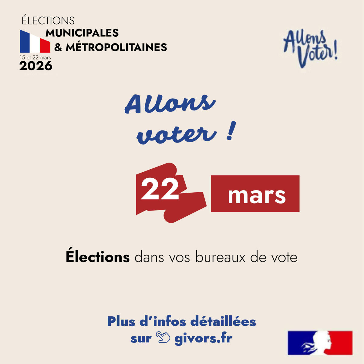📅 Dimanche 22 mars 2026 second tour des élections, les Givordines et les Givordins sont appelés à élire les représentants au conseil municipal mais également les conseillers métropolitains à la Métropole de Lyons pour deux élections distinctes.