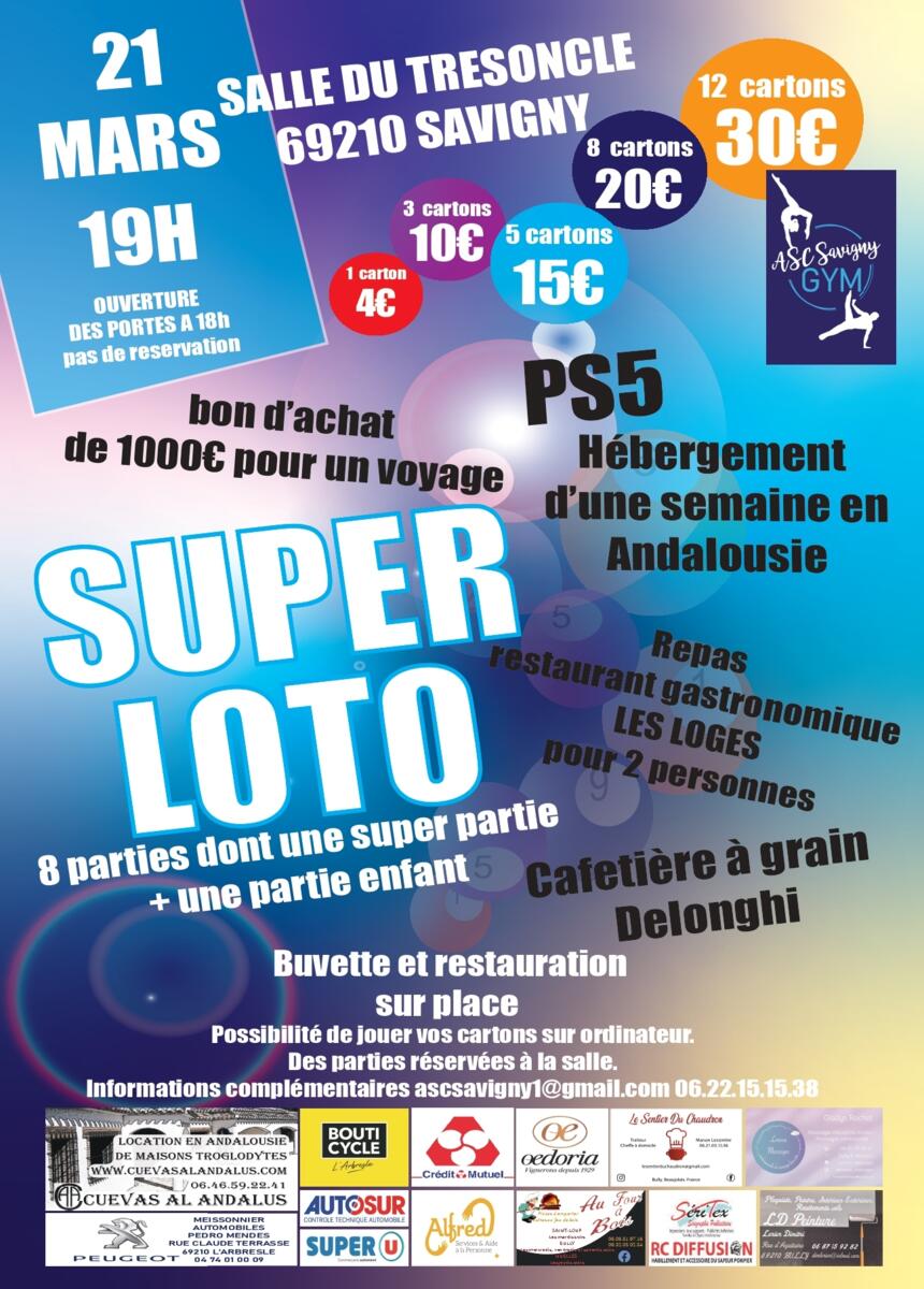 Vente cartons loto ASC Gym du 21 mars