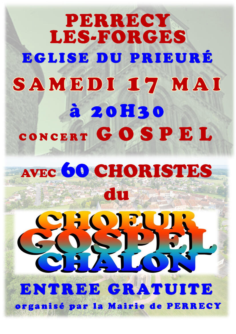 CONCERT GOSPEL 25-05-12 CHOEUR GOSPEL CHALON Samedi 17 mai à 20h30 Eglise de Perrecy-les-Forges Entrée gratuite