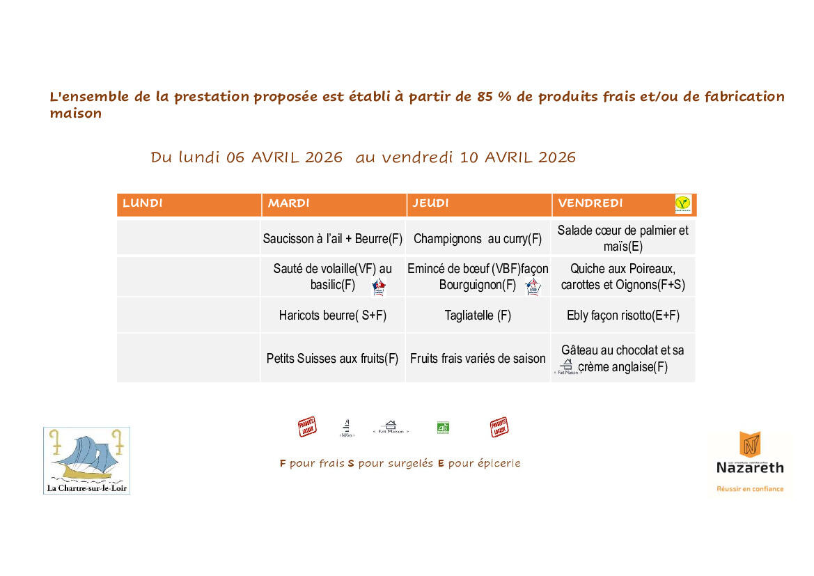 Veuillez trouver ci-joint les menus de la cantine pour la semaine du lundi 06 avril au vendredi 10 avril 2026.