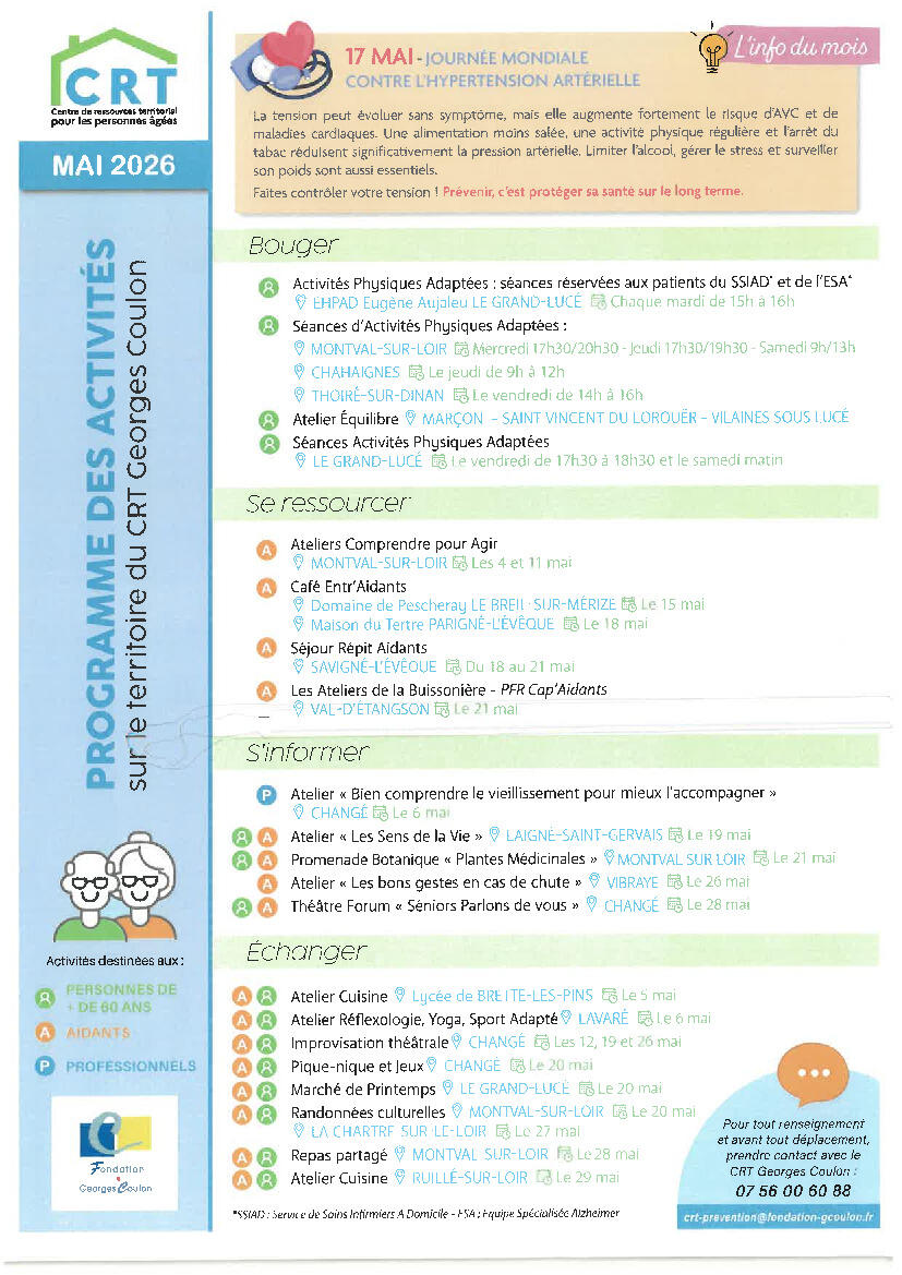 Programme des activités CRT Georges Coulon
