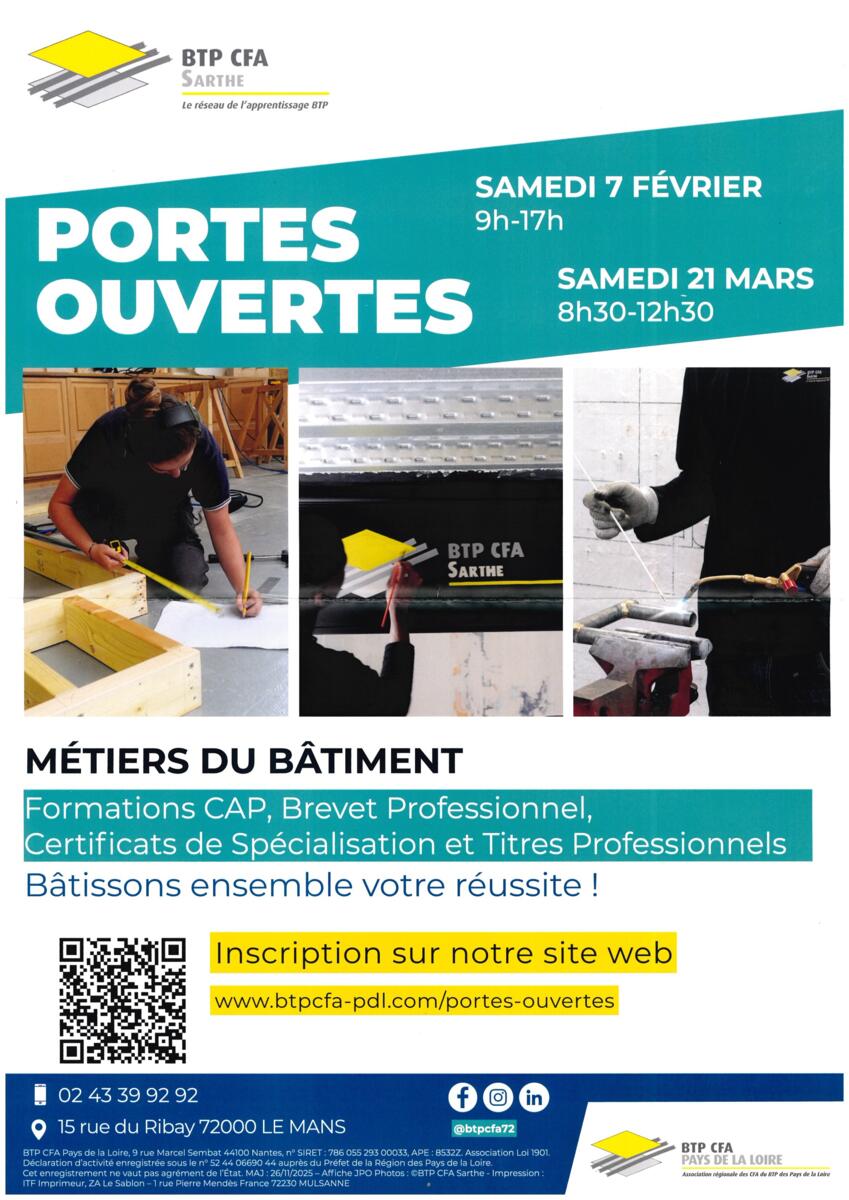 📣 Portes ouvertes du BTP CFA Sarthe !