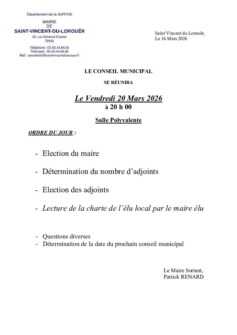CONSEIL MUNICIPAL DU 20 MARS 2026 - ELECTION MAIRE/ADJOINTS