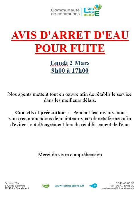 💧Coupure d'eau potable La Bougerie Saint Vincent du Lorouer