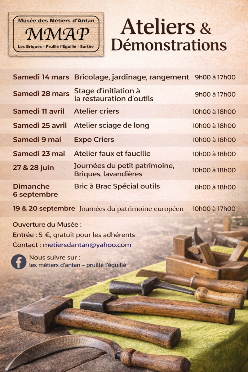 Votre mairie / Actualités / OUVERTURE DU MUSÉE DES MÉTIERS D'ANTAN - PRUILLE 🛠